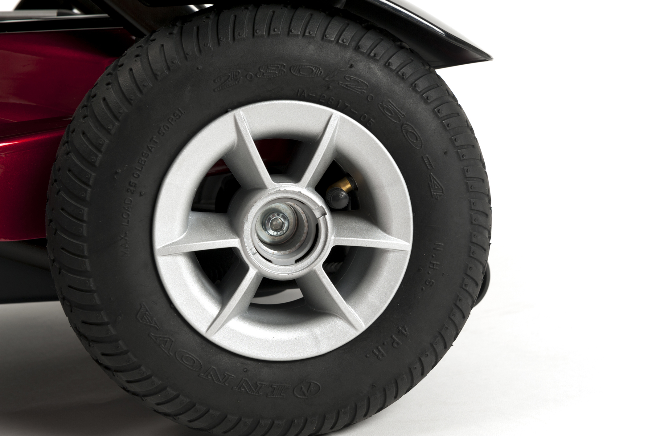 deze wielen veert de scootmobiel goed en rijdt deze uiterst comfortabel.