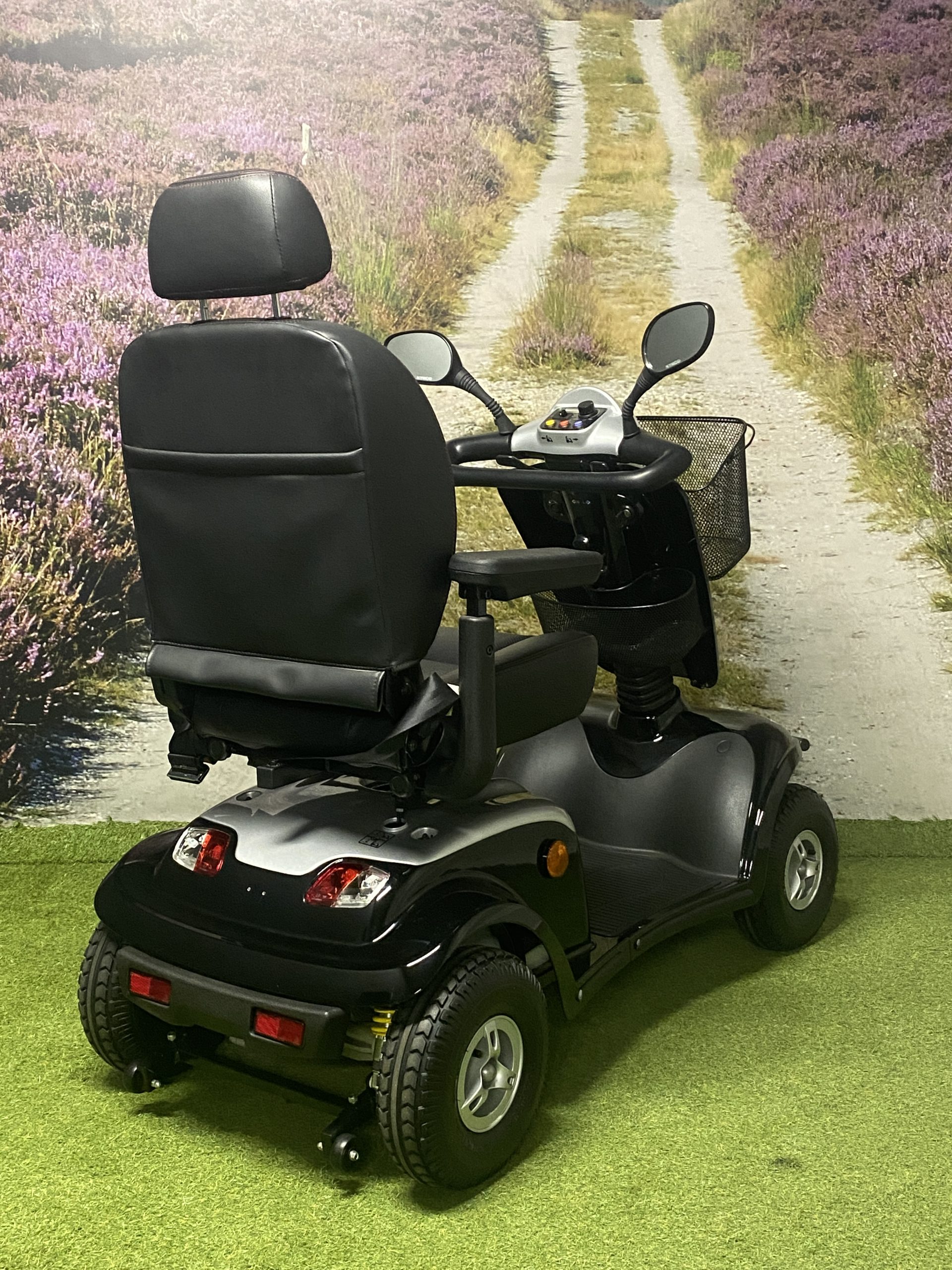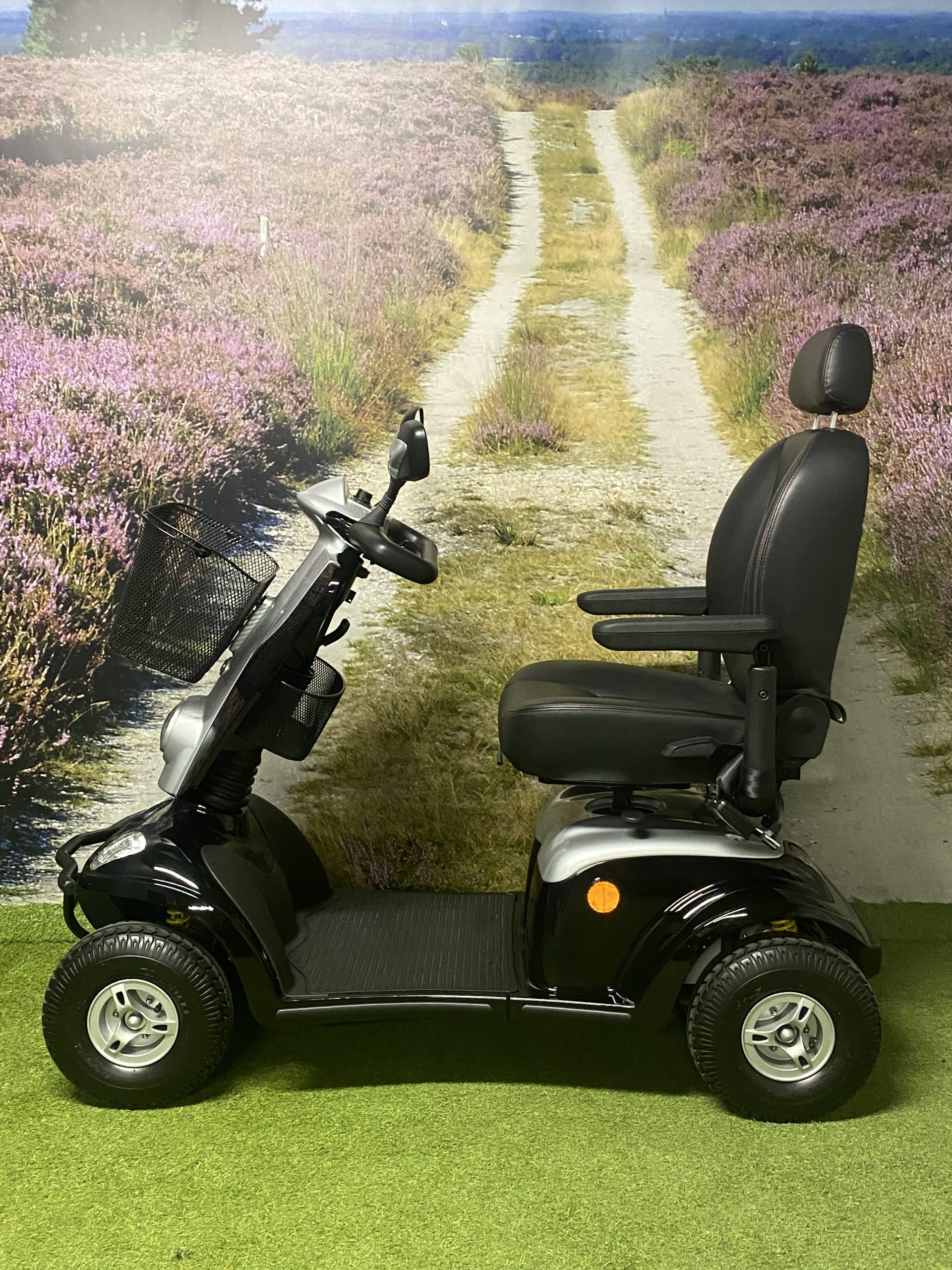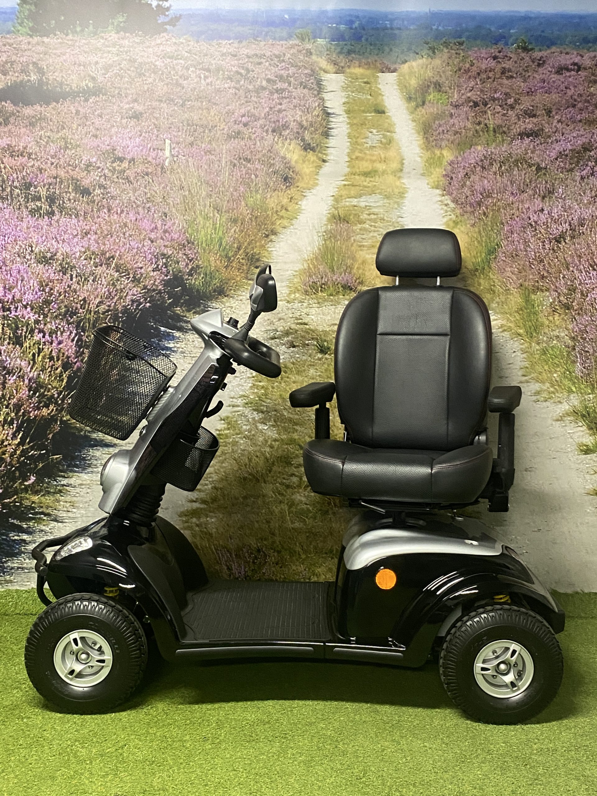 De Kymco Maxi XLS is een zeer complete scootmobiel. De lange wielbasis zorgt voor een comfortabele rit, in combinatie met de onafhankelijke vering bij ieder wiel. Daarnaast zorgt de lange wielbasis voor zeer veel beenruimte waardoor deze scootmobiel ook geschikt is voor lange mensen. Standaard is deze scootmobiel voorzien van veel opties zoals een stoel met hoofdsteun en gordel, 2 achteruitkijkspiegels, LED verlichting rondom, mand onder het stuur en een uitbreidingsbeugel onder de stoel voor bijvoorbeeld een mand achterop. Lange ritten zijn geen probleem door de grote accu’s.