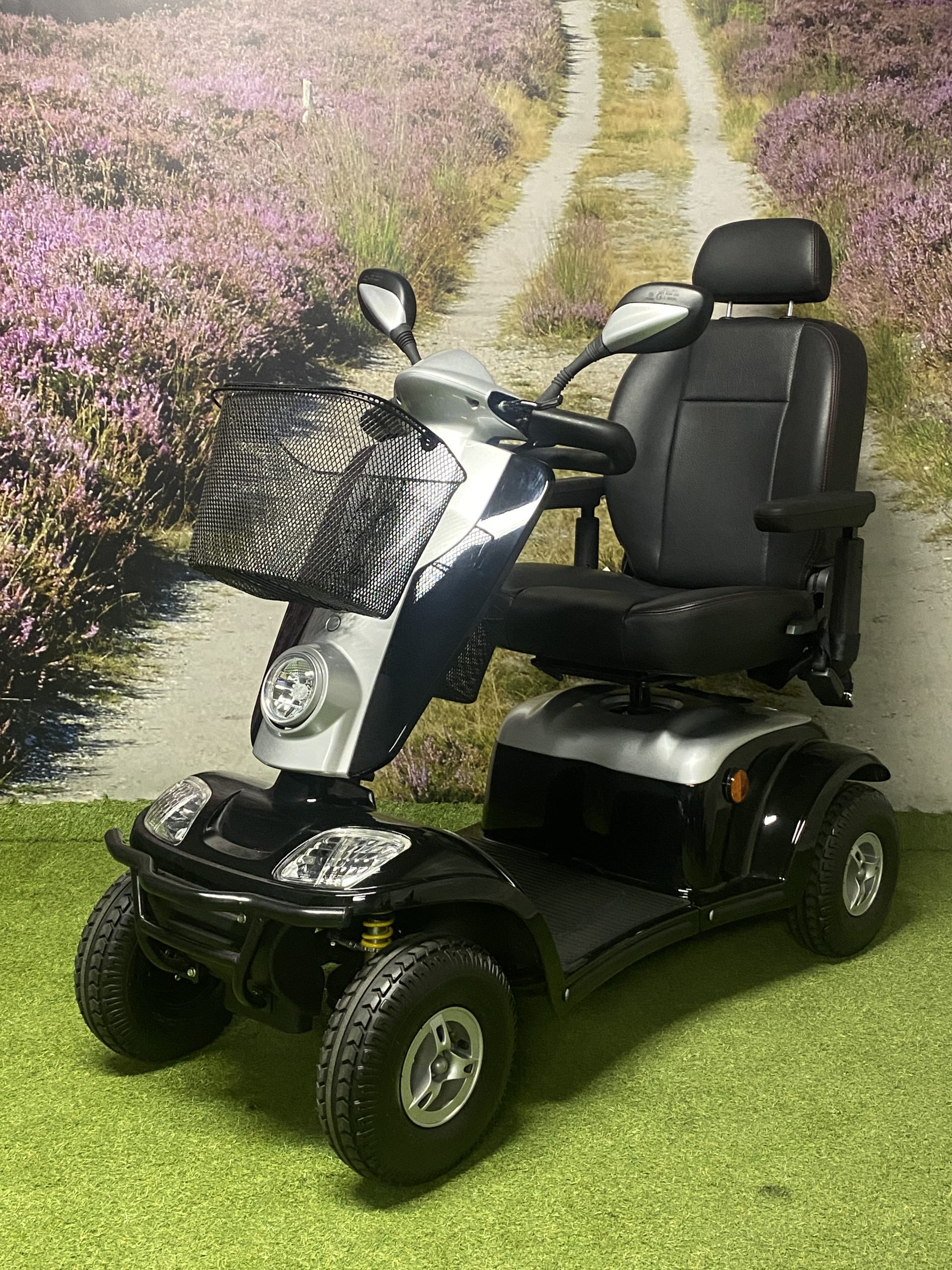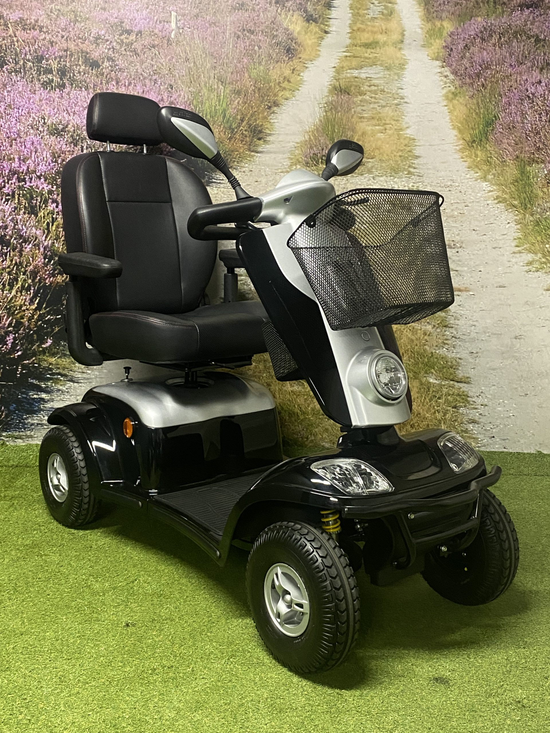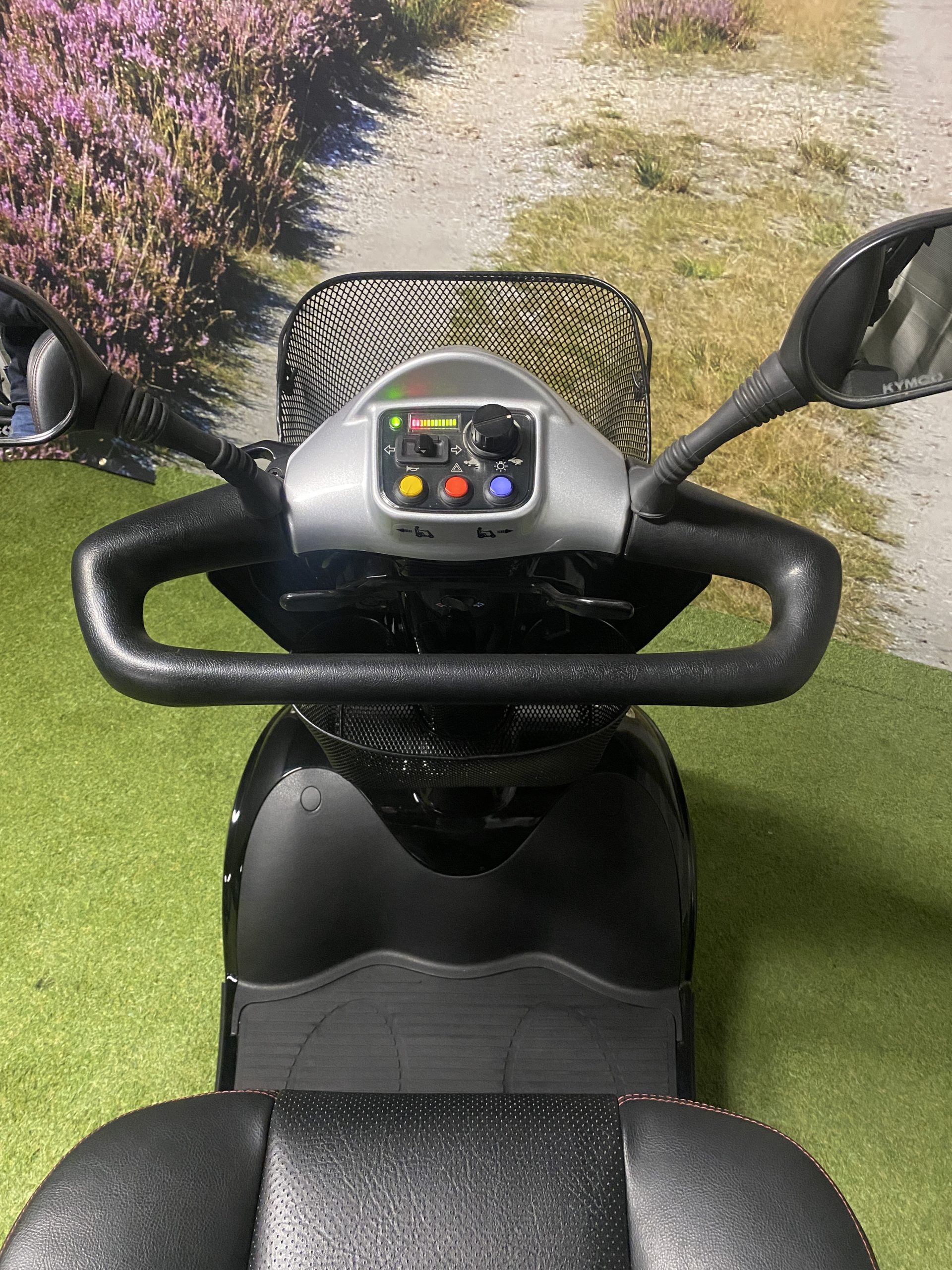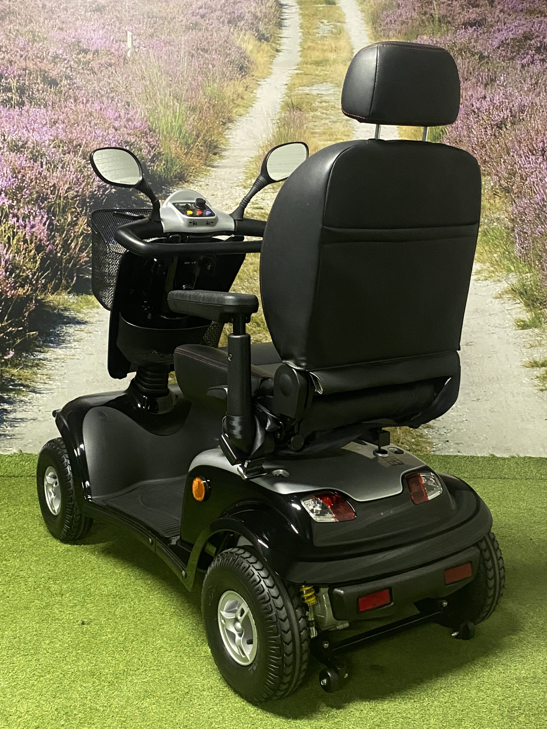De Kymco Maxi XLS is een zeer complete scootmobiel. De lange wielbasis zorgt voor een comfortabele rit, in combinatie met de onafhankelijke vering bij ieder wiel. Daarnaast zorgt de lange wielbasis voor zeer veel beenruimte waardoor deze scootmobiel ook geschikt is voor lange mensen. Standaard is deze scootmobiel voorzien van veel opties zoals een stoel met hoofdsteun en gordel, 2 achteruitkijkspiegels, LED verlichting rondom, mand onder het stuur en een uitbreidingsbeugel onder de stoel voor bijvoorbeeld een mand achterop. Lange ritten zijn geen probleem door de grote accu’s.